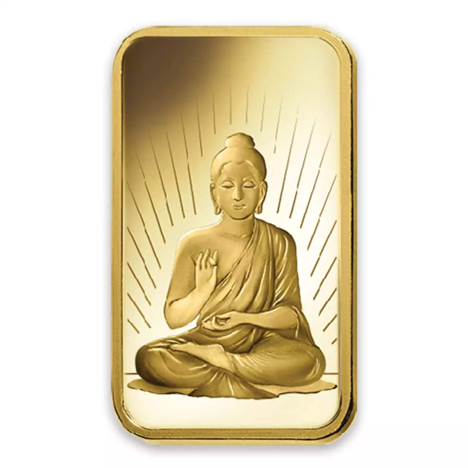 The Buddha is celebrated as a symbol for the Buddhist religion. The 1 oz PAMP Gold Bar - Buddha exemplifies beauty through the depiction of classic religious symbols and contains 1 troy ounce of .9999 fine Gold.